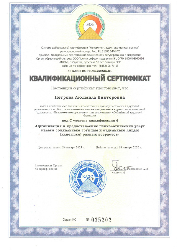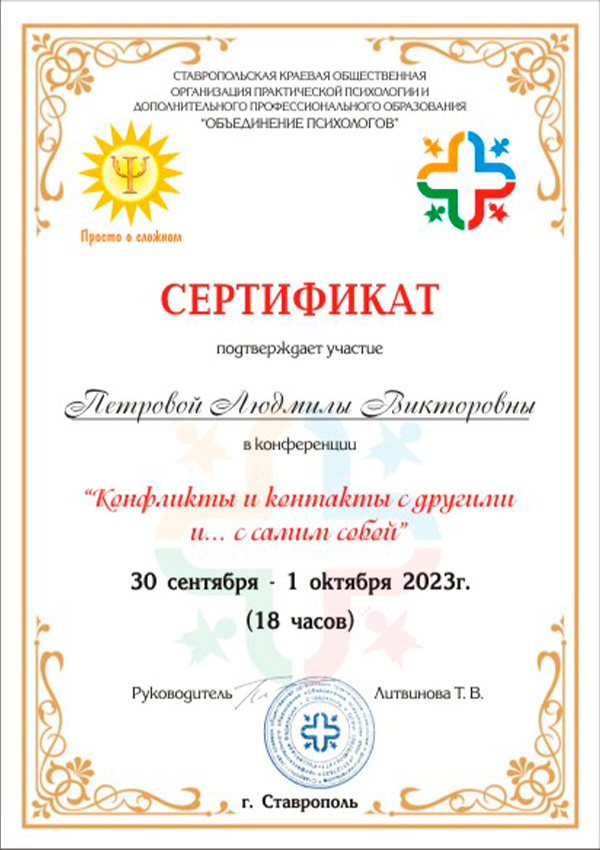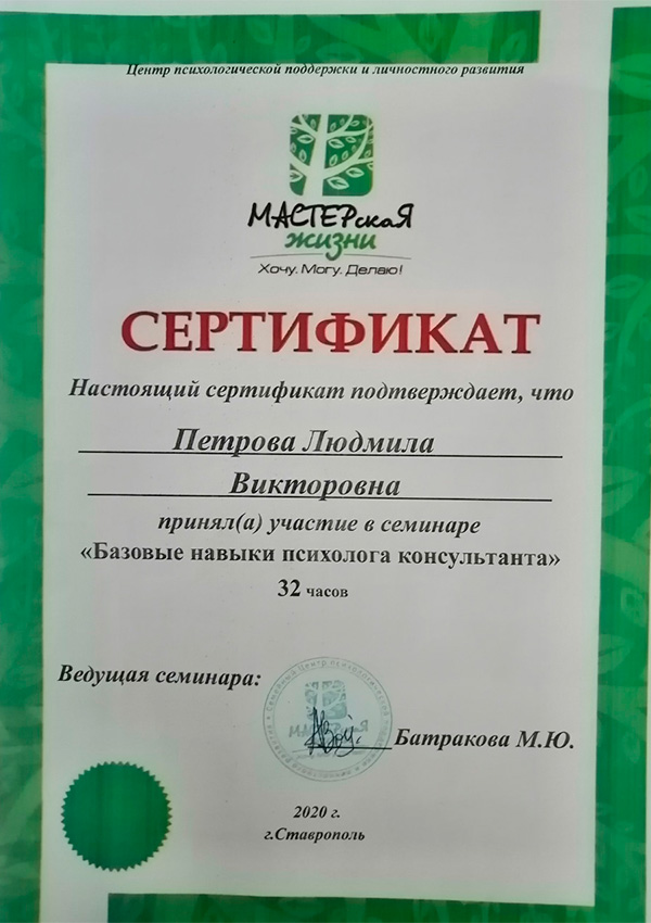 Беспокоят отношения с собой или с другими людьми? Давайте решим их вместе! Меня зовут Людмила Викторовна и я рада приветствовать Вас на моем сайте частного практикующего психолога. Мой профессиональный опыт в области психологии составляет более 10 лет. За это время я провела 2100+ часов индивидуальных консультаций и разработала 18 собственных методик, которые помогают людям обрести счастье и радость в жизни. Мы привыкли заботиться о своем физическом здоровье, но часто забываем о душевном равновесии и внутреннем спокойствии. Консультация психолога поможет стабилизировать Ваше эмоциональное состояние и научит жить свободно и счастливо.